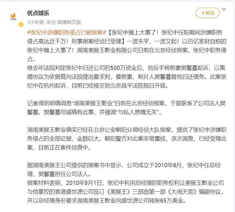 樊馨蔓掌舵的湖南美猴王影业,一纸报案书递到朝阳经侦,指控张纪中涉嫌职务侵占800多万。公司提供的证据里,清晰记录着他当年利用总经理职权,多次转移公司资金到私人关联账户,甚至直接套现归己。